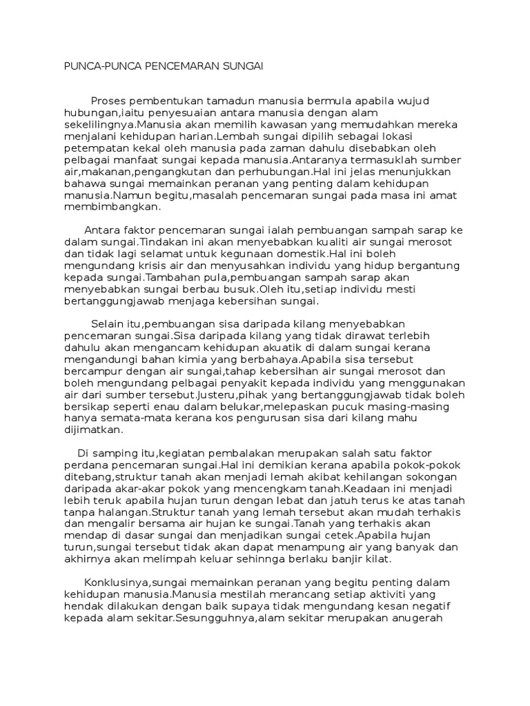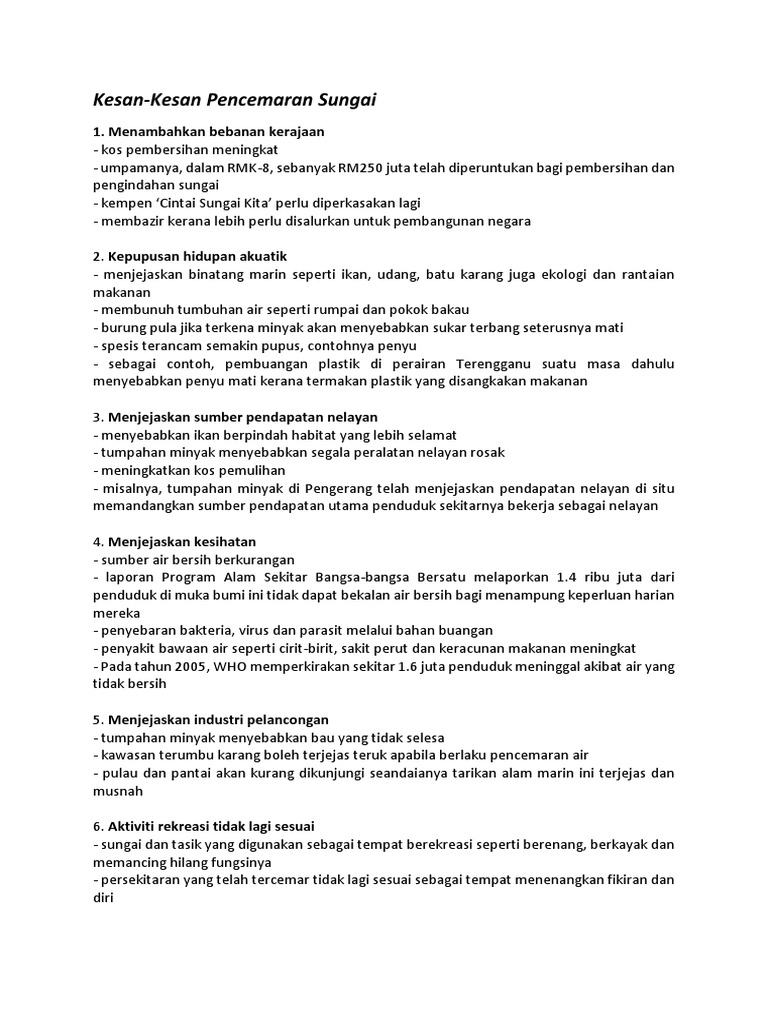 Kesan Kesan Pencemaran Sungai Pdf